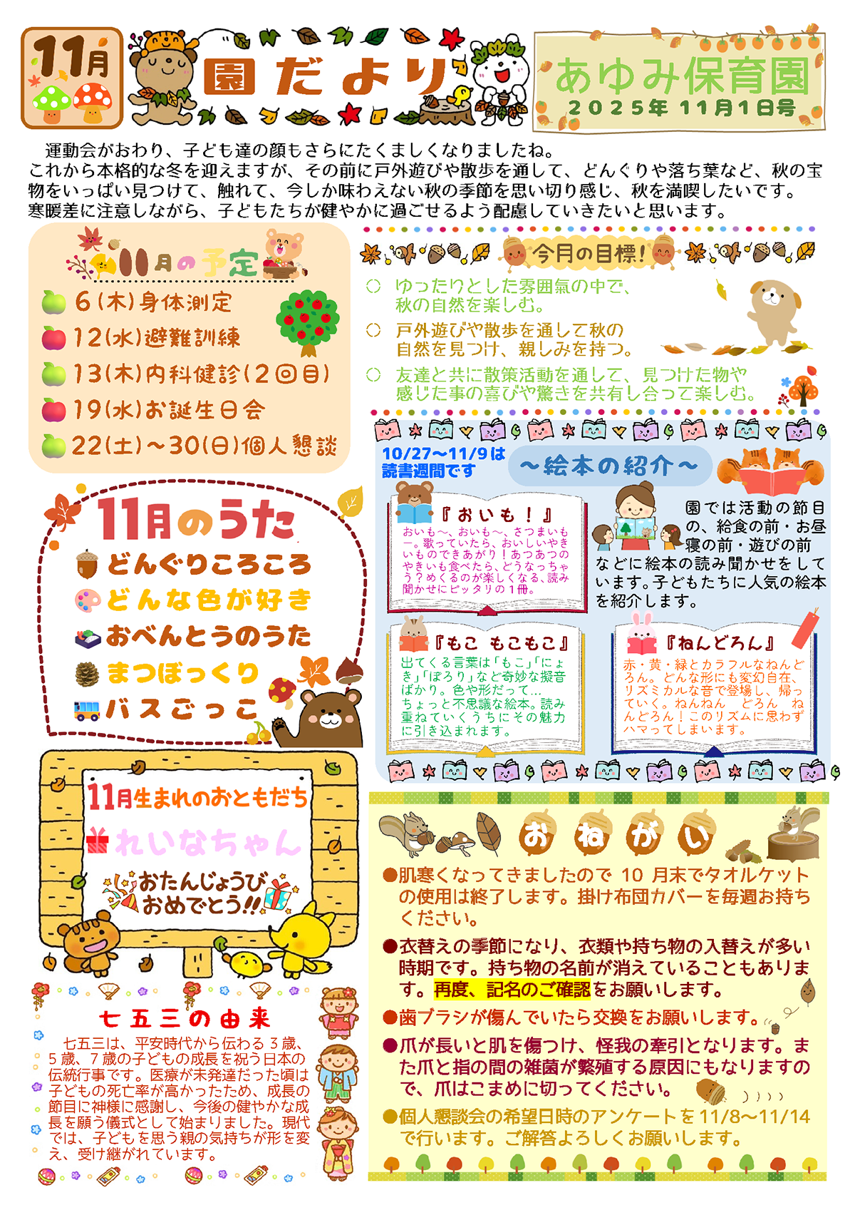 あゆみ保育園11月えんだより 公開中 2025 11/14 お知らせ 2025年11月14日 2025年11月1日号 PDFを見る お知らせ 園だより よかったらシェアしてね! URLをコピーしました! URLをコピーしました! ほけんだより 2025年10月号 公開中 もぐもぐだより 2025年 秋号 公開中 関連記事 ほけんだより 2025年11月号 公開中 2025年11月14日 もぐもぐだより 2025年 秋号 公開中 2025年11月14日 ほけんだより 2025年10月号 公開中 2025年10月10日 あゆみ保育園10月えんだより 公開中 2025年10月10日 あゆみ保育園9月えんだより 公開中 2025年9月3日 ほけんだより 2025年9月号 公開中 2025年9月3日 ほけんだより 2025年8月号 公開中 2025年8月6日 あゆみ保育園8月えんだより 公開中 2025年8月6日